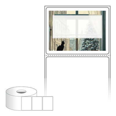 출력용 롤타입 스티커 디자인 라벨지, 규격코드: RS7052, 디자인코드: DA1494(오후엔 눈 그리고, 고양이), 70 x 52 (mm) , 지관: 40mm