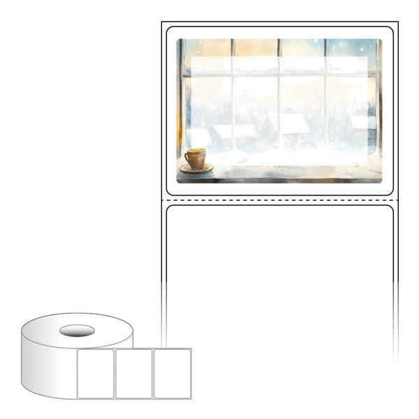 출력용 롤타입 스티커 디자인 라벨지, 규격코드: RS7052, 디자인코드: DA1510(겨울창가에서1), 70 x 52 (mm) , 지관: 40mm
