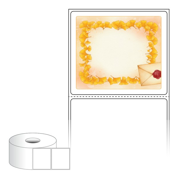 출력용 롤타입 스티커 디자인 라벨지, 규격코드: RS7061, 디자인코드: DA1426(은행잎 편지), 70 x 60.5 (mm) , 지관: 40mm