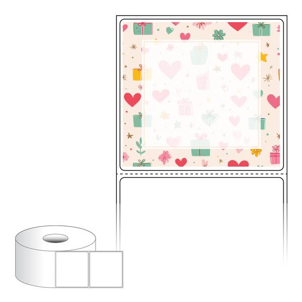 출력용 롤타입 스티커 디자인 라벨지, 규격코드: RS7065, 디자인코드: DA1393(선물 하트 포장지), 70 x 64.733 (mm) , 지관: 40mm