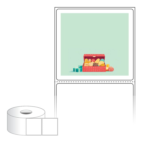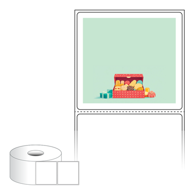 출력용 롤타입 스티커 디자인 라벨지, 규격코드: RS7065, 디자인코드: DA1478(크리스마스 아침에 선물을 받다.), 70 x 64.733 (mm) , 지관: 40mm
