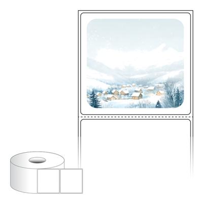 출력용 롤타입 스티커 디자인 라벨지, 규격코드: RS7065, 디자인코드: DA1541(고요한 한겨울의 풍경을 보내드려요), 70 x 64.733 (mm) , 지관: 40mm