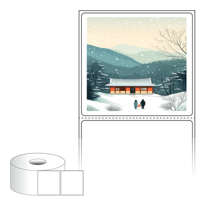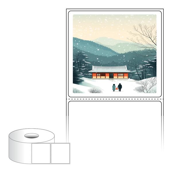 출력용 롤타입 스티커 디자인 라벨지, 규격코드: RS7065, 디자인코드: DA1577(귀향, 눈내리는 설날), 70 x 64.733 (mm) , 지관: 40mm