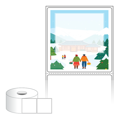 출력용 롤타입 스티커 디자인 라벨지, 규격코드: RS7373, 디자인코드: DA1569(설레는 설날의 아침), 73 x 73 (mm) , 지관: 40mm