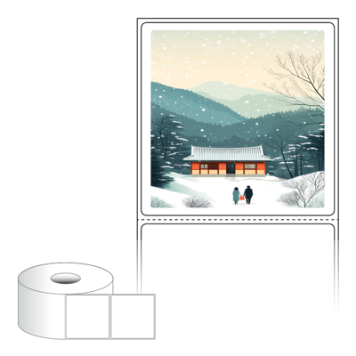 출력용 롤타입 스티커 디자인 라벨지, 규격코드: RS7373, 디자인코드: DA1577(귀향, 눈내리는 설날), 73 x 73 (mm) , 지관: 40mm