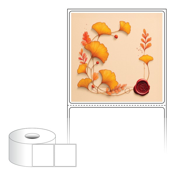 출력용 롤타입 스티커 디자인 라벨지, 규격코드: RS7573, 디자인코드: DA1437(은행잎 메모), 75 x 73 (mm) , 지관: 40mm