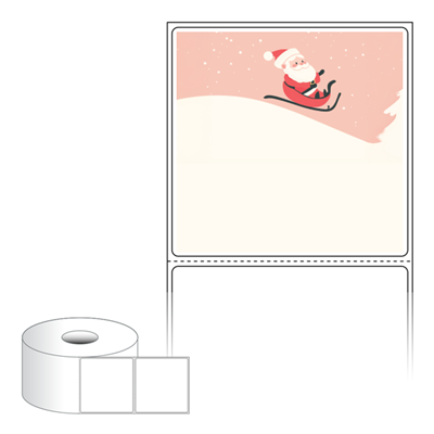 출력용 롤타입 스티커 디자인 라벨지, 규격코드: RS7573, 디자인코드: DA1482(산타 신난다), 75 x 73 (mm) , 지관: 40mm