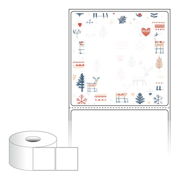 출력용 롤타입 스티커 디자인 라벨지, 규격코드: RS7573, 디자인코드: DA1526(겨울숲 여행 함께해요), 75 x 73 (mm) , 지관: 40mm