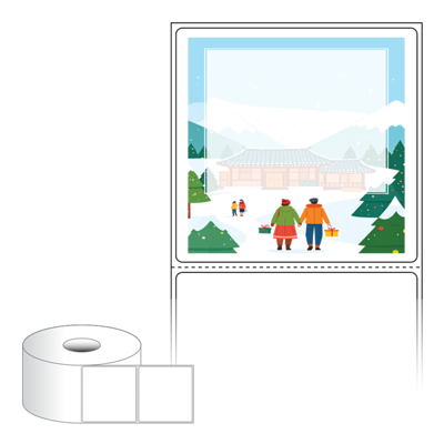 출력용 롤타입 스티커 디자인 라벨지, 규격코드: RS7573, 디자인코드: DA1569(설레는 설날의 아침), 75 x 73 (mm) , 지관: 40mm