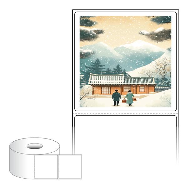 출력용 롤타입 스티커 디자인 라벨지, 규격코드: RS7573, 디자인코드: DA1575(설, 따뜻한 귀향), 75 x 73 (mm) , 지관: 40mm