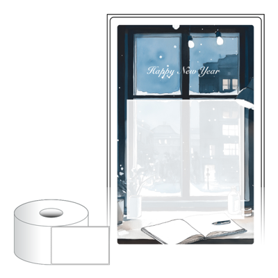 출력용 롤타입 스티커 디자인 라벨지, 규격코드: RS80124, 디자인코드: DA1503(겨울 창가에서, 해피뉴이어), 80 x 124 (mm) , 지관: 40mm