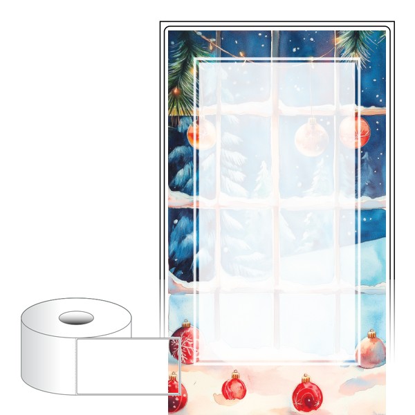 출력용 롤타입 스티커 디자인 라벨지, 규격코드: RS80149, 디자인코드: DA1467(함께해요 눈내리는 성탄의 밤), 80 x 149 (mm) , 지관: 40mm