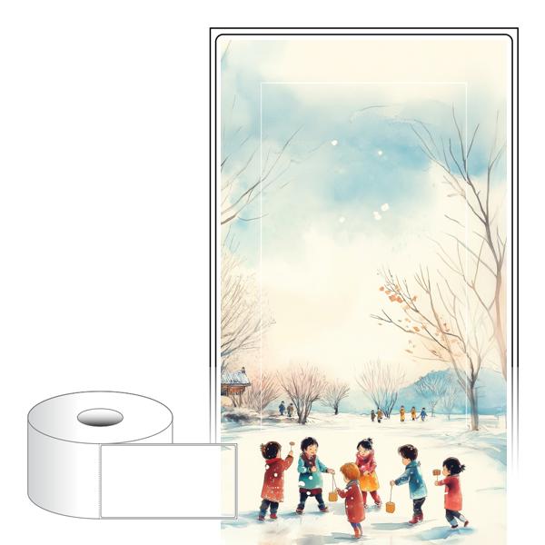 출력용 롤타입 스티커 디자인 라벨지, 규격코드: RS80149, 디자인코드: DA1523(즐거운 겨울날의 한장면), 80 x 149 (mm) , 지관: 40mm