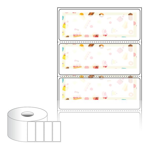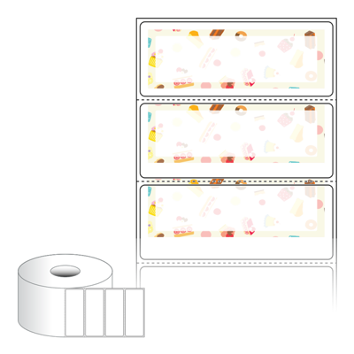 출력용 롤타입 스티커 디자인 라벨지, 규격코드: RS8031, 디자인코드: DA1655(스위트, 간식패턴), 80 x 30.867 (mm) , 지관: 40mm