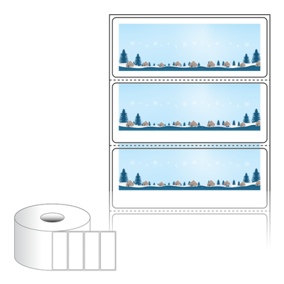 출력용 롤타입 스티커 디자인 라벨지, 규격코드: RS8031, 디자인코드: DA1718(눈내리는 고요한 숲의 마을), 80 x 30.867 (mm) , 지관: 40mm