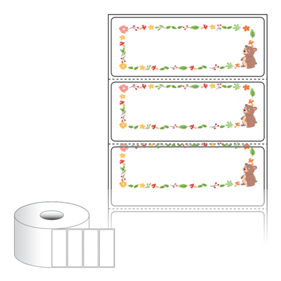 출력용 롤타입 스티커 디자인 라벨지, 규격코드: RS8031, 디자인코드: DA1821(귀여운 곰돌이 발라드), 80 x 30.867 (mm) , 지관: 40mm