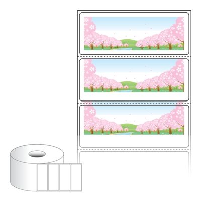출력용 롤타입 스티커 디자인 라벨지, 규격코드: RS8031, 디자인코드: DA1854(벚꽃길), 80 x 30.867 (mm) , 지관: 40mm