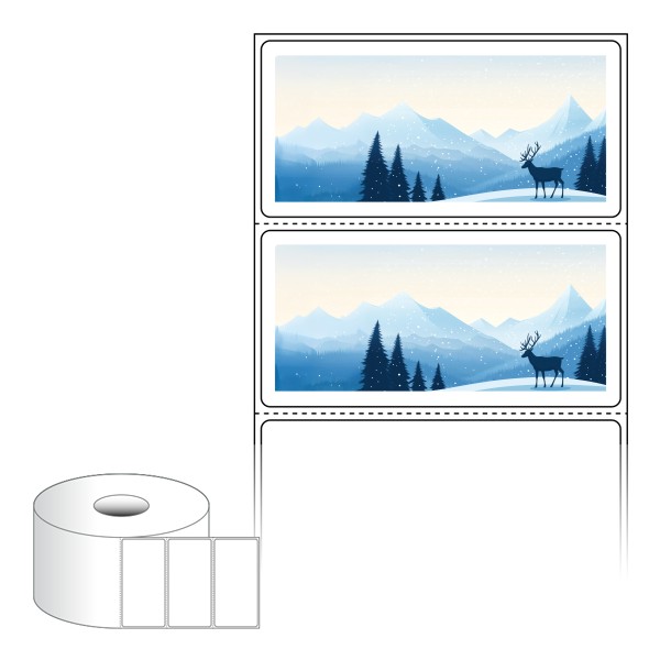 출력용 롤타입 스티커 디자인 라벨지, 규격코드: RS8040, 디자인코드: DA1473(새벽의 겨울숲, 힐링의 시간), 80 x 39.333 (mm) , 지관: 40mm
