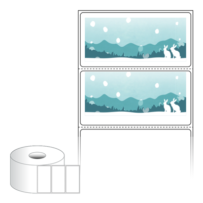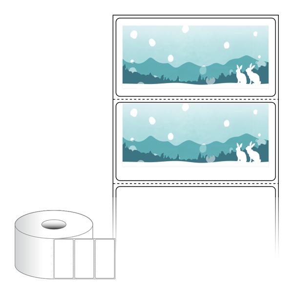출력용 롤타입 스티커 디자인 라벨지, 규격코드: RS8040, 디자인코드: DA1716(설산 속 토끼가족), 80 x 39.333 (mm) , 지관: 40mm