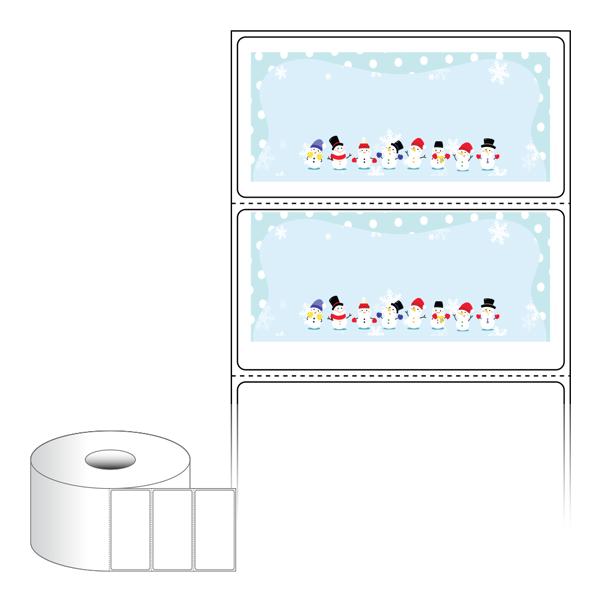 출력용 롤타입 스티커 디자인 라벨지, 규격코드: RS8040, 디자인코드: DA1721(눈사람 다 모였네요), 80 x 39.333 (mm) , 지관: 40mm