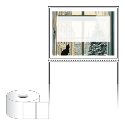 출력용 롤타입 스티커 디자인 라벨지, 규격코드: RS8060, 디자인코드: DA1494(오후엔 눈 그리고, 고양이), 80 x 60 (mm) , 지관: 40mm