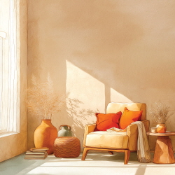 출력용 롤타입 스티커 디자인 라벨지, 규격코드: RS8073, 디자인코드: DA1436(아늑한 어느날 오후의 풍경), 80 x 73 (mm) , 지관: 40mm