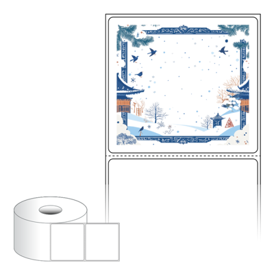 출력용 롤타입 스티커 디자인 라벨지, 규격코드: RS8073, 디자인코드: DA1514(겨울 프레임, 설날), 80 x 73 (mm) , 지관: 40mm