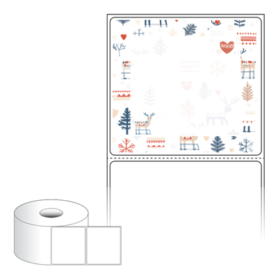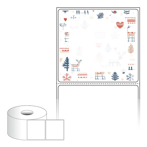출력용 롤타입 스티커 디자인 라벨지, 규격코드: RS8073, 디자인코드: DA1526(겨울숲 여행 함께해요), 80 x 73 (mm) , 지관: 40mm