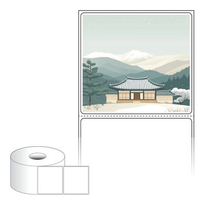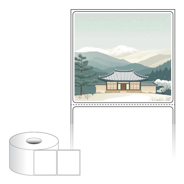 출력용 롤타입 스티커 디자인 라벨지, 규격코드: RS8073, 디자인코드: DA1578(고요한 설날의 아침), 80 x 73 (mm) , 지관: 40mm