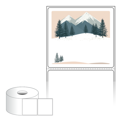 출력용 롤타입 스티커 디자인 라벨지, 규격코드: RS8073, 디자인코드: DA1582(저 잘지내요~ 겨울산에 인사), 80 x 73 (mm) , 지관: 40mm