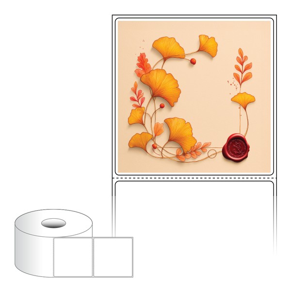 출력용 롤타입 스티커 디자인 라벨지, 규격코드: RS8080, 디자인코드: DA1437(은행잎 메모), 80 x 79.55 (mm) , 지관: 40mm