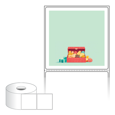 출력용 롤타입 스티커 디자인 라벨지, 규격코드: RS8080, 디자인코드: DA1478(크리스마스 아침에 선물을 받다.), 80 x 79.55 (mm) , 지관: 40mm