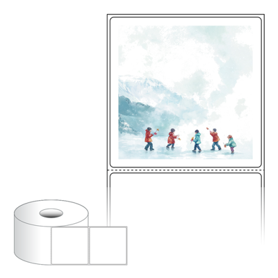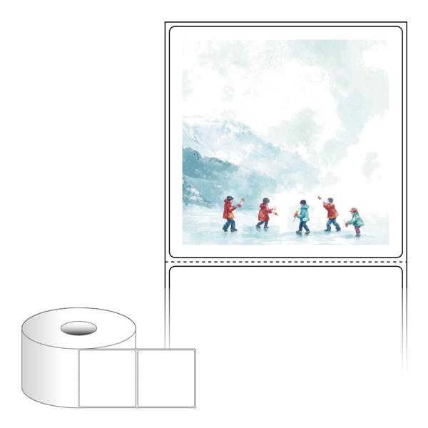 출력용 롤타입 스티커 디자인 라벨지, 규격코드: RS8080, 디자인코드: DA1522(추워도 즐거운 아이들의 겨울), 80 x 79.55 (mm) , 지관: 40mm