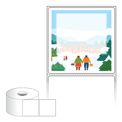 출력용 롤타입 스티커 디자인 라벨지, 규격코드: RS8080, 디자인코드: DA1569(설레는 설날의 아침), 80 x 79.55 (mm) , 지관: 40mm