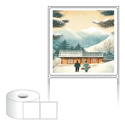 출력용 롤타입 스티커 디자인 라벨지, 규격코드: RS8080, 디자인코드: DA1575(설, 따뜻한 귀향), 80 x 79.55 (mm) , 지관: 40mm