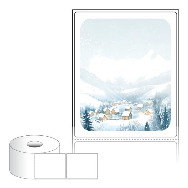 출력용 롤타입 스티커 디자인 라벨지, 규격코드: RS8098, 디자인코드: DA1541(고요한 한겨울의 풍경을 보내드려요), 80 x 98 (mm) , 지관: 40mm
