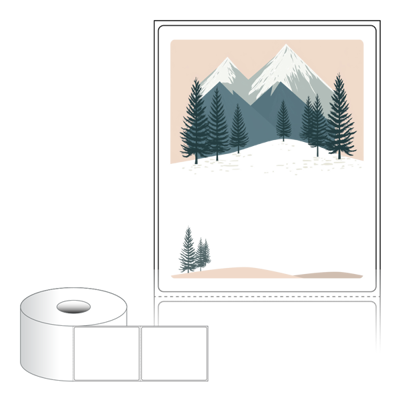 출력용 롤타입 스티커 디자인 라벨지, 규격코드: RS8098, 디자인코드: DA1582(저 잘지내요~ 겨울산에 인사), 80 x 98 (mm) , 지관: 40mm