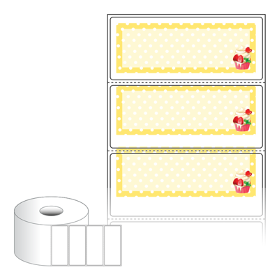 출력용 롤타입 스티커 디자인 라벨지, 규격코드: RS8535, 디자인코드: DA1671(즐거운 스위트 파르페), 85 x 35 (mm) , 지관: 40mm