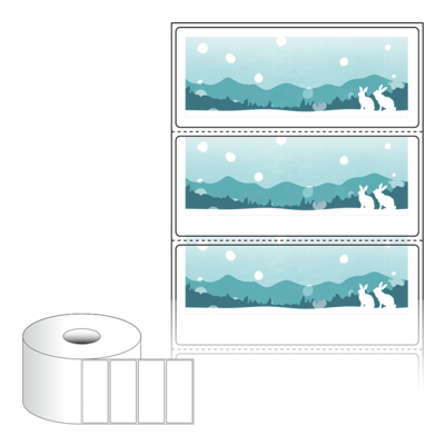 출력용 롤타입 스티커 디자인 라벨지, 규격코드: RS8535, 디자인코드: DA1716(설산 속 토끼가족), 85 x 35 (mm) , 지관: 40mm