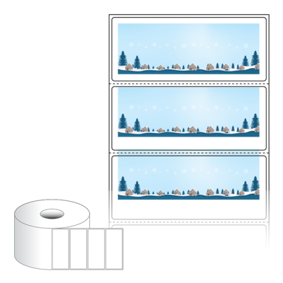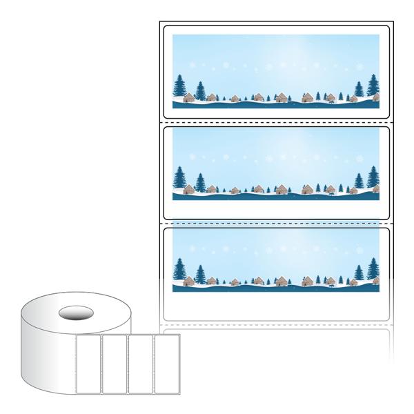 출력용 롤타입 스티커 디자인 라벨지, 규격코드: RS8535, 디자인코드: DA1718(눈내리는 고요한 숲의 마을), 85 x 35 (mm) , 지관: 40mm