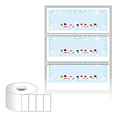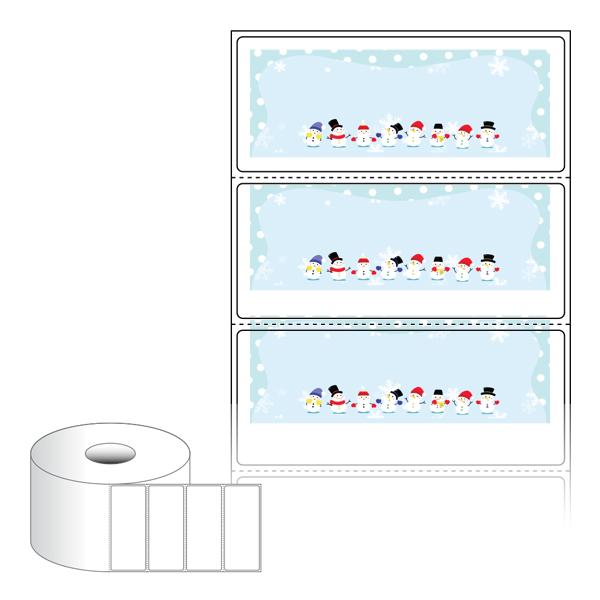 출력용 롤타입 스티커 디자인 라벨지, 규격코드: RS8535, 디자인코드: DA1721(눈사람 다 모였네요), 85 x 35 (mm) , 지관: 40mm