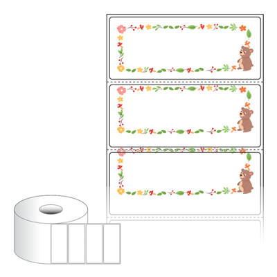 출력용 롤타입 스티커 디자인 라벨지, 규격코드: RS8535, 디자인코드: DA1821(귀여운 곰돌이 발라드), 85 x 35 (mm) , 지관: 40mm