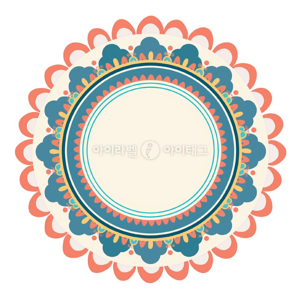 출력용 롤타입 스티커 디자인 라벨지, 규격코드: RS8787, 디자인코드: DA1418(단청 받침), Φ87 (mm) 원형 , 지관: 40mm