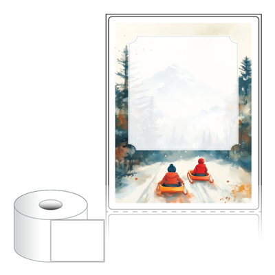 출력용 롤타입 스티커 디자인 라벨지, 규격코드: RS90116, 디자인코드: DA1495(겨울날의 동화, 그리고 즐거운 추억), 90 x 115.533 (mm) , 지관: 40mm