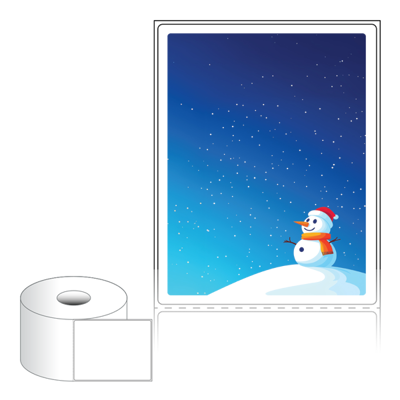 출력용 롤타입 스티커 디자인 라벨지, 규격코드: RS90116, 디자인코드: DA1506(겨울밤 외롭지 않니? 눈사람씨), 90 x 115.533 (mm) , 지관: 40mm