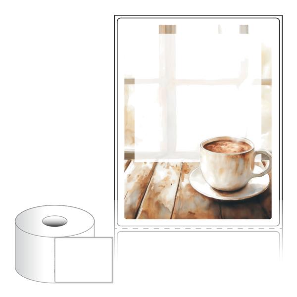 출력용 롤타입 스티커 디자인 라벨지, 규격코드: RS90116, 디자인코드: DA1536(그 겨울의 찻집에서 생각나는 사람에게), 90 x 115.533 (mm) , 지관: 40mm