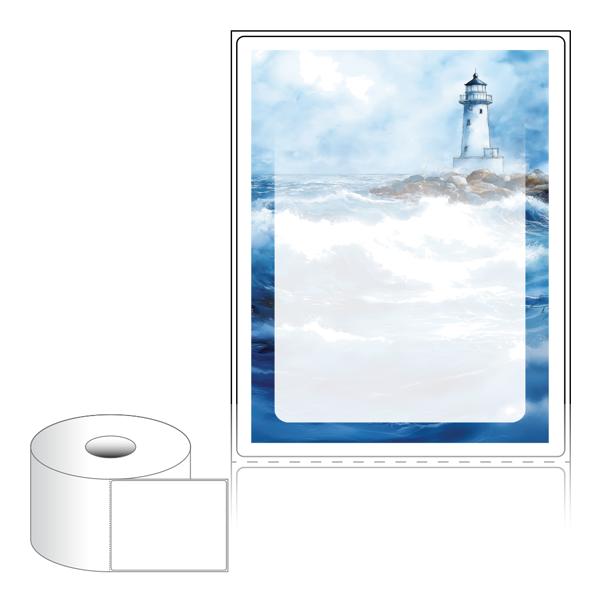 출력용 롤타입 스티커 디자인 라벨지, 규격코드: RS90116, 디자인코드: DA1543(폭풍이 몰아치는 바닷가에서1), 90 x 115.533 (mm) , 지관: 40mm