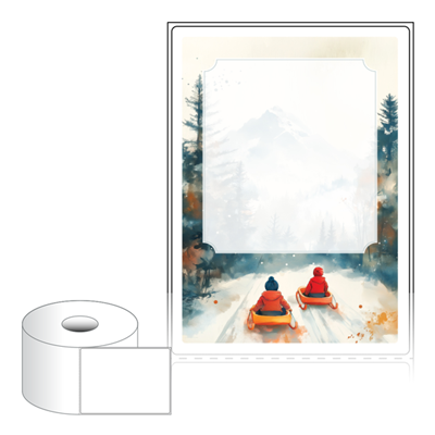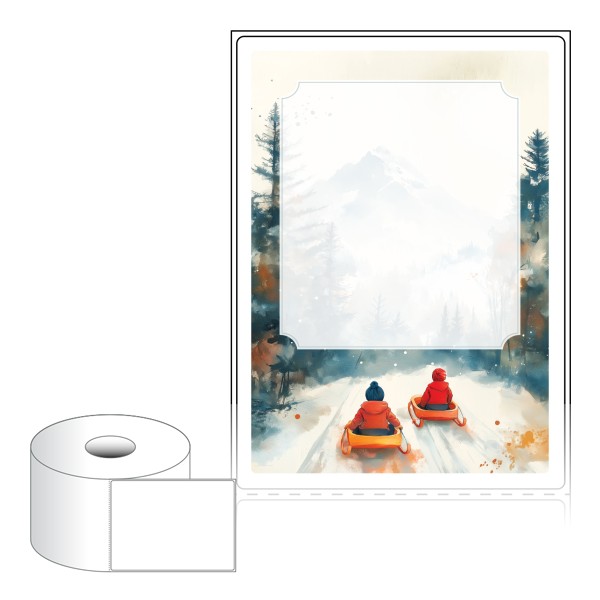 출력용 롤타입 스티커 디자인 라벨지, 규격코드: RS90124, 디자인코드: DA1495(겨울날의 동화, 그리고 즐거운 추억), 90 x 124 (mm) , 지관: 40mm