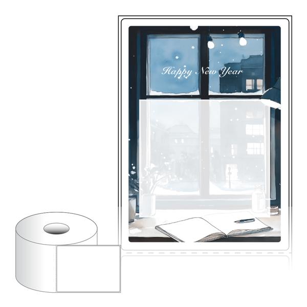 출력용 롤타입 스티커 디자인 라벨지, 규격코드: RS90124, 디자인코드: DA1503(겨울 창가에서, 해피뉴이어), 90 x 124 (mm) , 지관: 40mm