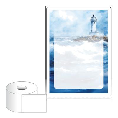 출력용 롤타입 스티커 디자인 라벨지, 규격코드: RS90124, 디자인코드: DA1543(폭풍이 몰아치는 바닷가에서1), 90 x 124 (mm) , 지관: 40mm